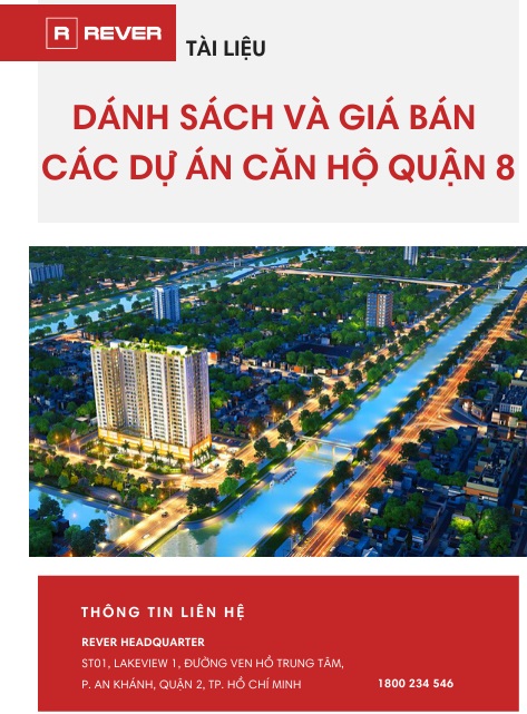 Tài liệu cung cấp danh sách và giá bán các dự án căn hộ tại thị trường Quận 8 cập nhật mới nhất do Rever